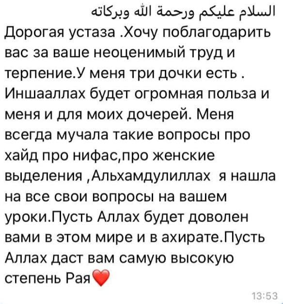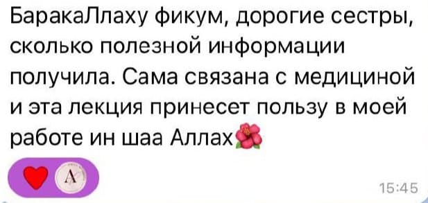В качестве бонуса одна из лучших интегративных практикующих гинекологов-мусульманок Ася Исаевна بارك الله فيها провела урок в формате «Вопрос-ответ», на котором вы узнаете много интересной и практической информации.